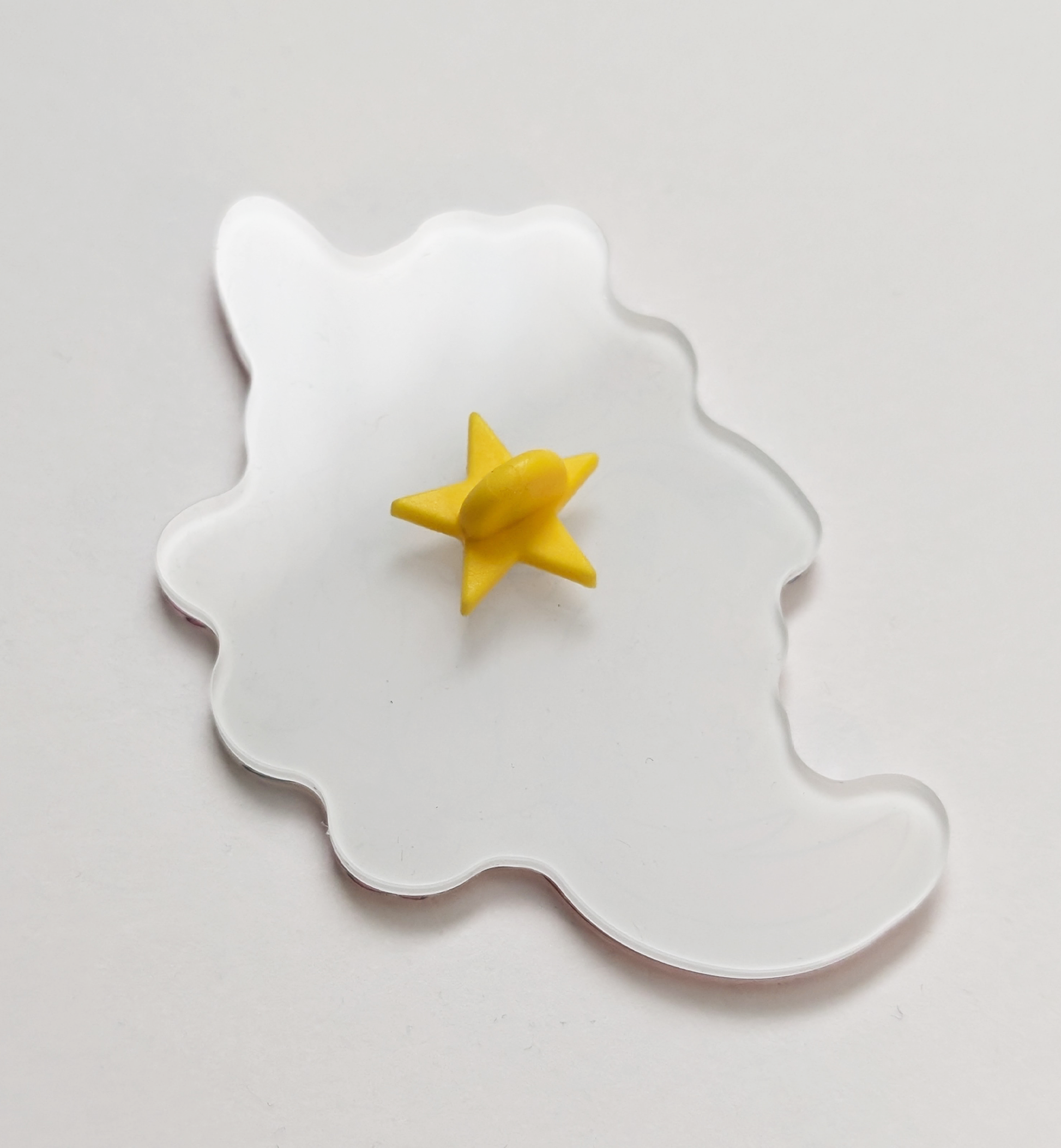 Materials: Acrylic and the back of the pin comes with a soft star shaped backing.